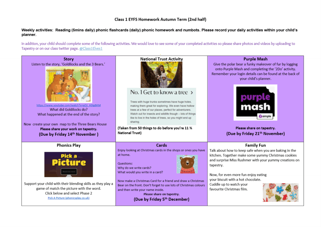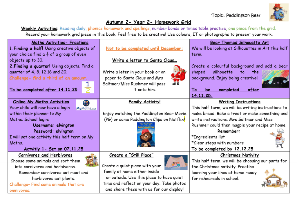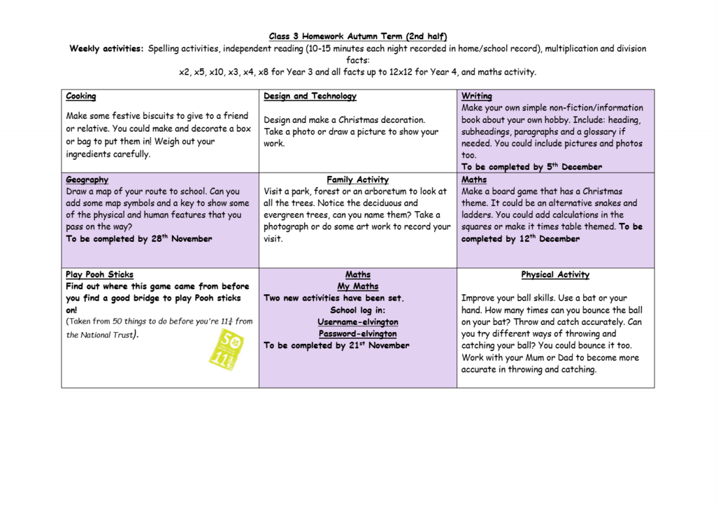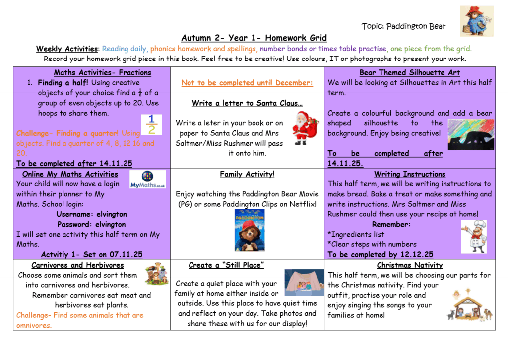 Please see below for homework grids for the second half of the spring term 2025. Click on an image to view a full size .pdf version. Please note that for the children in Year 6, homework will continue from last half term with the CGP papers.