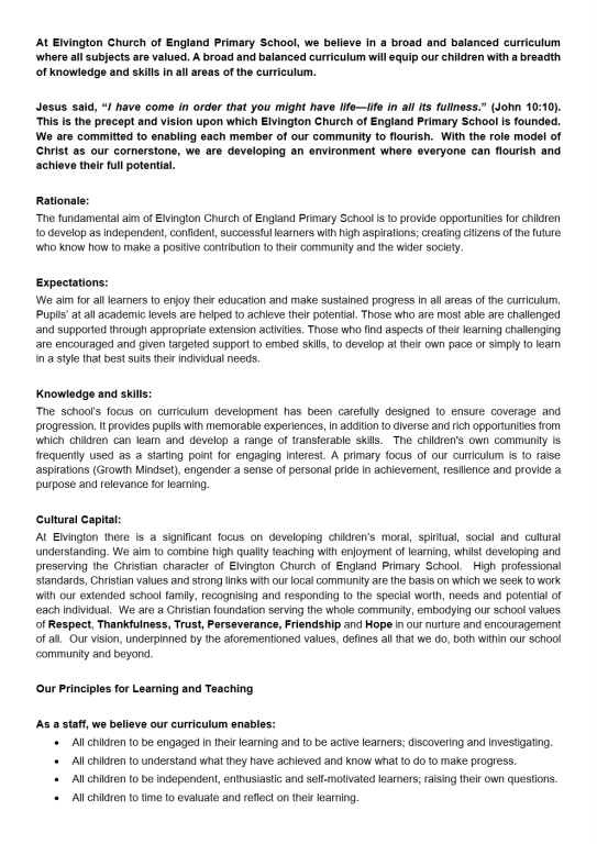 Curriculum Intent Statement Please scroll through the slideshow below or click here to download the Curriculum Intent Statement as a .pdf
