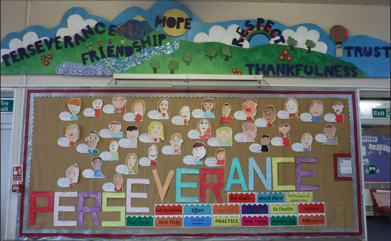 Persevering entails effort and practice. This half term, we will be talking to the children about persevering and believing in themselves. We will remind them just how important a growth mindset is and celebrate their determination and willingness to always be their best. This focus is highlighted by the display in the hall, which includes contributions from Class Three.